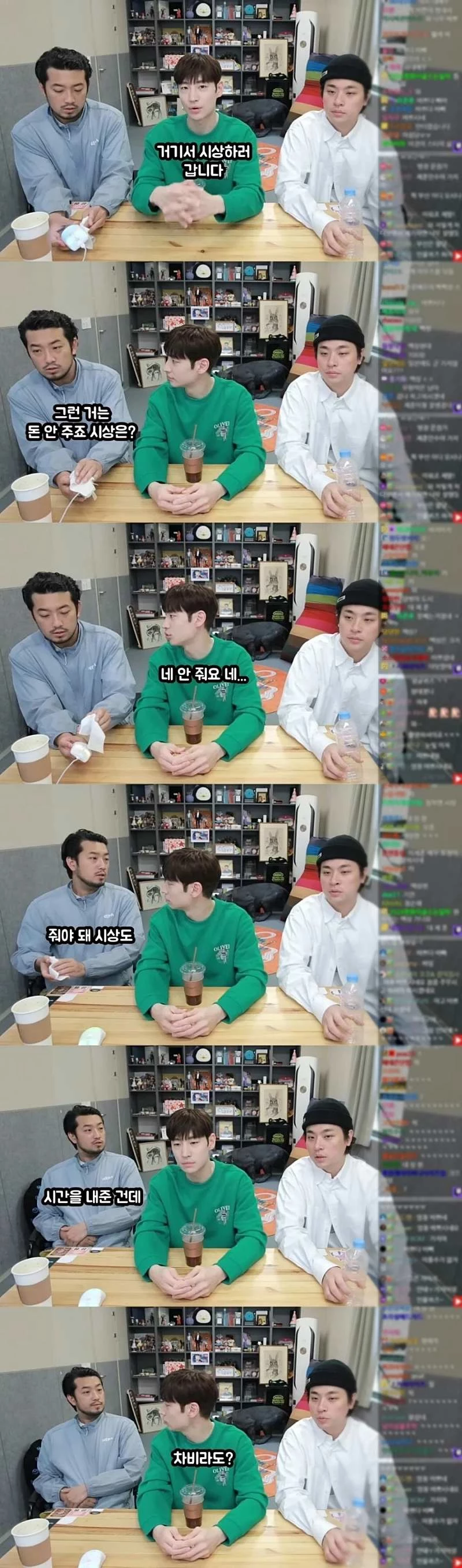 接著李末年表示:「去頒獎的話應該也要給吧,畢竟是騰出時間,即使是車馬費應該也要支付一些,根據出發地點的不同按照距離補貼。」一旁的李帝勳和朴正民也紛紛點頭認同,朴正民還開玩笑地許願:「至少給個周邊也好啊~」