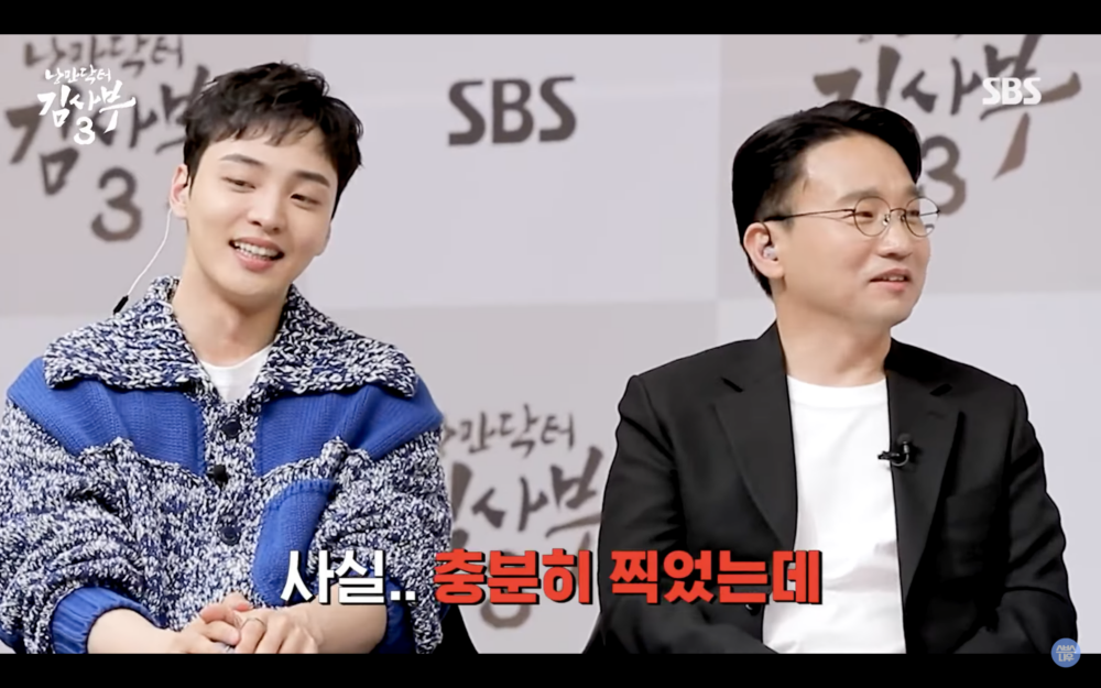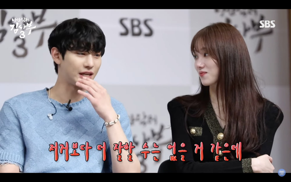 被問到對於這場戲有沒有什麼想表示,李聖經邊看著安孝燮邊回答:「我覺得有點可惜,應該可以做得更好的,對吧?!」安孝燮則驚訝地說:「沒有!我覺得可能沒辦法做得比那再更好了。」一旁的尹那武也說到底是想做得多好,金旻載附和:「做更好的話會出大事的!」。