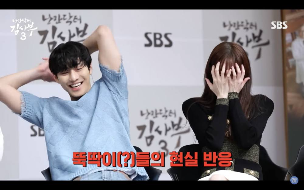 除了男女主角,金旻載和蘇珠妍組成的CP也受到許多喜愛,因為女朋友去志工服務,想成為帥氣男友的金旻載怕打擾所以不敢傳訊息給對方,被問到如果現實中金旻載會怎麼做,他馬上回答當然是跟著女友一起去做志工,而蘇珠妍也被問到在志工服務時收到男友訊息會回覆什麼,她說會傳個親吻的自拍給他,不愧是直球CP表達愛意超大方~