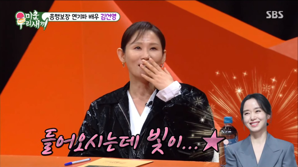 申東燁接著問說:「我本想問你在這劇裏的兒子演員們中,想在別的作品演愛情劇的人是誰呢!看來應該是池昌旭了吧?」金善映淡定的回復說:「怎麽通過愛情劇相遇呢?誰會讓我演(笑)可以當姑姑或是小姨。」而一旁的徐章焄聽後立馬辯解說現在的電視劇也逐漸擴大,讓她去嘗試XD一陣討論後,金善映最終妥協了並表示:「我會努力的,謝謝大家!」