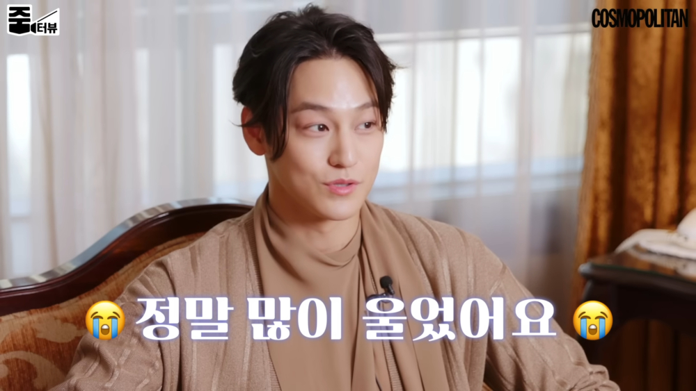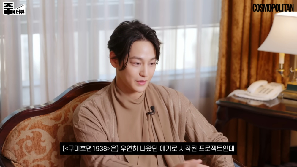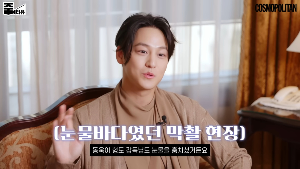 提到《九尾狐傳1938》拍攝的幕後故事時,金汎表示自己屬於是看非常有名的悲傷電影都不會留下一滴眼淚的人,他接著補充說:「但最後一天的拍攝,我哭了,是積纍的感情、依依不捨帶點幸福的眼淚(笑)是棟旭哥和導演偷走了我的眼淚~」