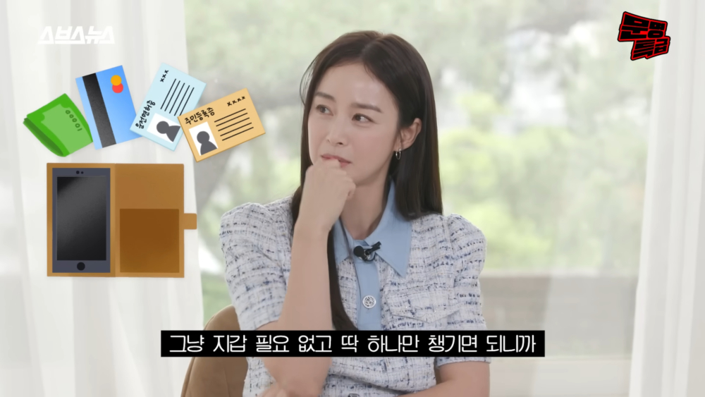 接著的「黑料」更是讓金泰希立馬害羞得低下頭,是説被發現使用長輩們愛用的「掀蓋式手機殼」XD而她也一秒進入推銷模式,積極分享說:「一但用過這個,就回不去了。像是可以放身份證、駕照、信用卡、現金等,錢包也不需要帶,很方便!!」而一旁的崔載林看後默默地說了一句:「我母親也在用」,另一邊,金盛吳秀出了自己透明式的手機殼還不忘補刀說:「我可是新世代」引發現場一片笑聲XD