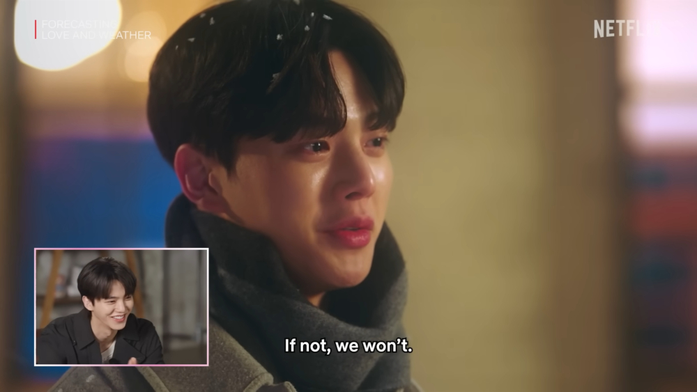 最後一部則是《氣象廳的人們》,看到自己喝醉吻朴敏英的場面,宋江直接叫出聲「啊」然後全身僵硬,之後還很激動地想阻止角色接下來要說的肉麻台詞:「不!別說出來!」播出結局片段時,看著深情款款的男主角李時雨,宋江感嘆:「與宰彥也太不一樣了。」