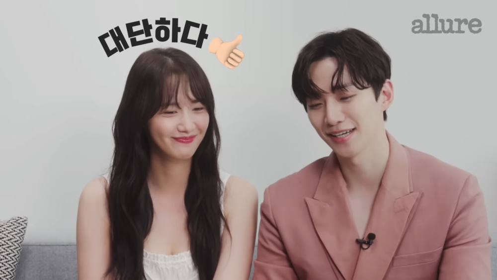 當被問到在拍攝現場對方演員最經常説的話或動作時,潤娥表示俊昊會在現場做聲帶模仿:「非常好~!」;俊昊則表示潤娥在鏡頭找角度或在待機的時候會經常做「嘟嘴」像企鵝一樣的表情。這時潤娥立馬反應說:「我好像知道,因為你之前和我説過(笑)。看監視器的時候,我會有(嘟嘴)的時候,我為什麽在裝可愛啊(捂嘴)」