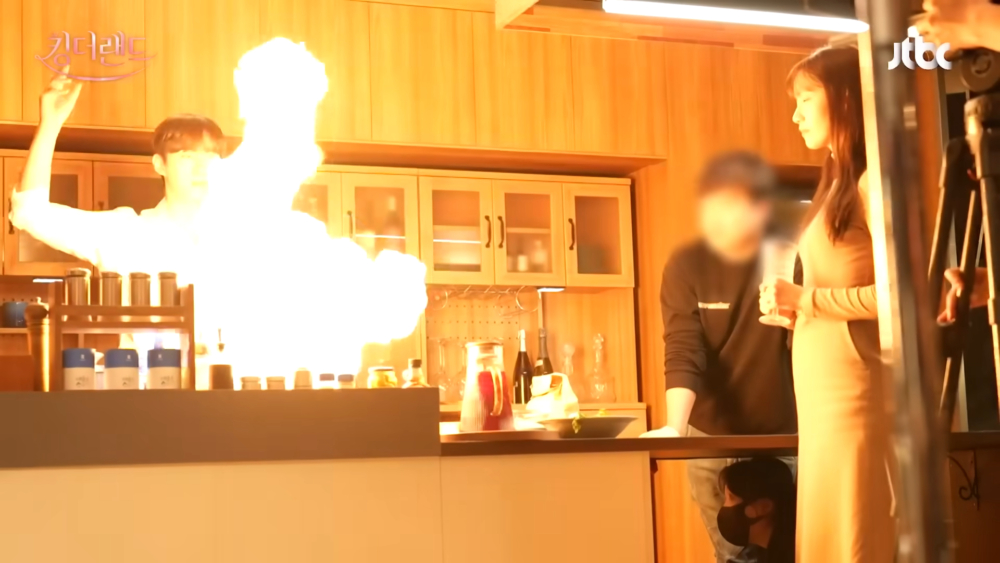 拍攝厨房着火的那一幕也太危險了吧(驚)好近的距離...雖説是拍戲,但看俊昊和潤娥的表情應該是真的被嚇到了(笑)。拍攝第8集結尾的超甜吻戲時,兩人更是一秒進入狀態,在大冬天拍攝這淋水的戯真的太敬業了,而且還反復拍了好換了幾個角度拍...!!全身都濕透的俊昊更是冷得直發抖。