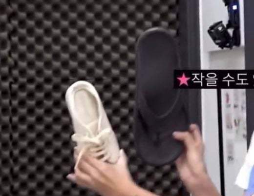 隨後李泳知意外看到朴寶英的鞋子,驚訝地拿起來給大家看,並拿導演的拖鞋一起對比,21.5cm與29cm的大小差距馬上就很直觀地展現出來了,朴寶英這個鞋號根本是小朋友的尺寸吧XD
