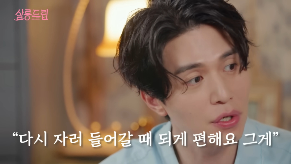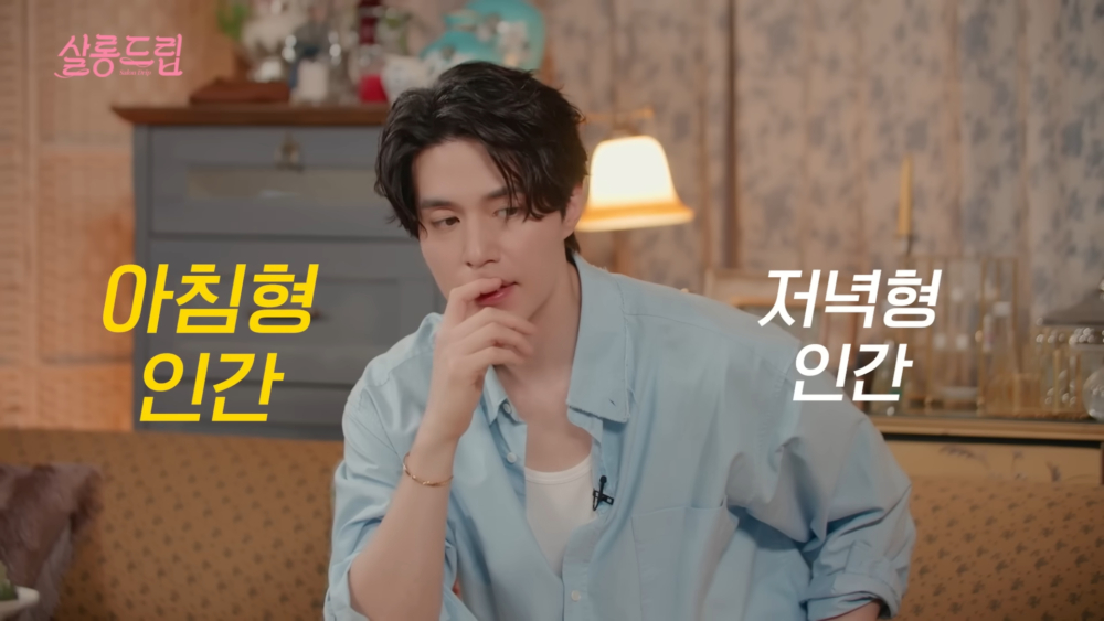 《Salon Drip》살롱드립是由搞笑藝人張度妍主持的談話類Youtube節目,想不到最後一期節目居然還真的邀請了李棟旭助陣(首集嘉賓是孔劉)XD節目中,被問到自己一天的日常是怎麽樣的,是屬於早起還是晚起的類似時,李棟旭回答說:「是早起類型的,但又不全是早起大概9點半至10點左右。起床後會先整理被子、枕頭,其實這些都很簡單,再回去睡覺的時候就會很舒服。」