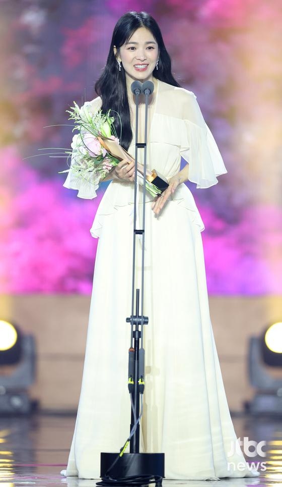 宋慧喬在今年4月28日舉行的「第59屆百想藝術大賞」上憑藉Netflix原創劇《黑暗榮耀》拿下視后,發表感言時更模仿台詞說「涎鎮啊,我獲獎了」而引起話題。近日宋慧喬接受韓媒專訪,被問到是否會有《黑暗榮耀3》,她還打趣表示:「等李到晛退伍回來,我年紀會不會太大~」