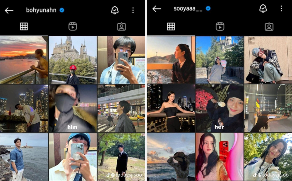 近日有網友就發現,安普賢年初的一則IG貼文中,照片中的窗戶倒影上疑似出現Jisoo的身影,紛紛表示嗑到啦~另外還有粉絲重新拼接兩人的IG,將相似的照片放在對應的位置,就成了CP感滿滿的情侶排版XD