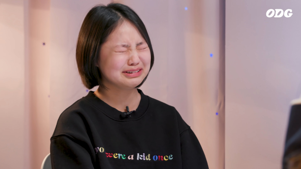 其實這也不是IU第一次惹哭粉絲了(誤)2021年的一檔YouTube節目「ODG」該節目會邀請經常邀請小學生以「裝不認識嘉賓」為主題與藝人互動,從而瞭解新生代的看法。其中出演過《海岸村恰恰恰》飾演很愛和爸爸頂嘴、想要整牙的童星金敏瑞的偶像就是IU。