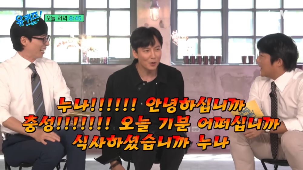 出了名愛撒嬌又話癆的金南佶被問到「全度妍曾因為你過度撒嬌想避開你」是否屬實時,他模仿全度妍的語氣說:「『呀...你真的你,對我吃過飯了南佶啊~』我是因為在一起的話,很開心啊~」