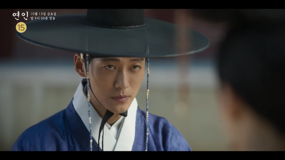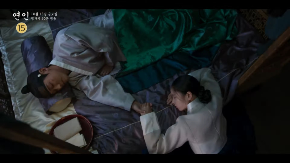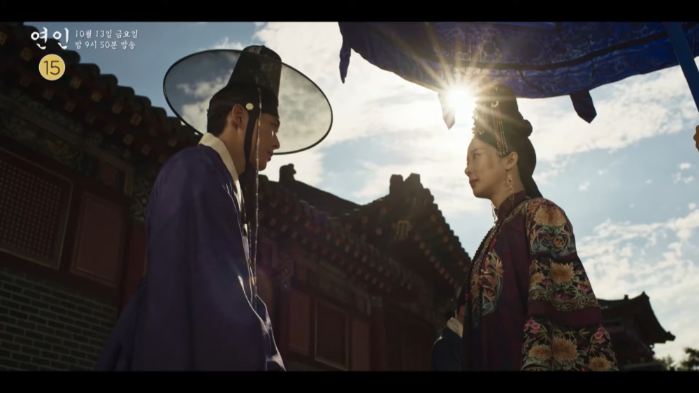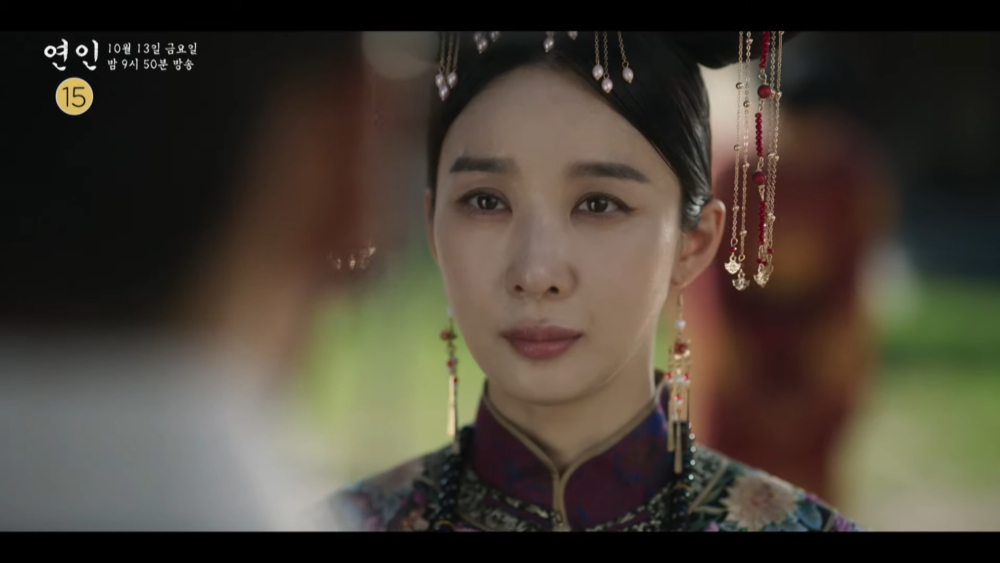 在《戀人》上半部中,柳吉彩(安恩真 飾)以為李張灦(南宮珉 飾)已經客死他鄉,便答應嫁給追求自己的武官具遠武(池承炫 飾),卻沒想到李張灦竟然回來了... 吉彩最終還是無法割捨一切與張灦私奔,只能含淚送他離開,而神秘的藍面紗女子(李清娥 飾)也在結尾登場,與張灦之間的氛圍十分耐人尋味~