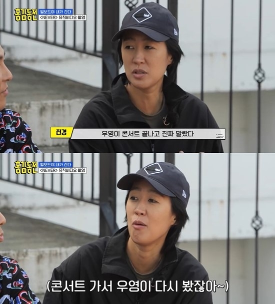 洪真慶露出害羞笑容說:「我最近得了相思病...」一旁的金淑反問說:「那祐榮怎麽辦?」洪真慶有些心虛回答:「祐榮當然也很帥啊,但在看完演唱會後覺得很難和祐榮相處」朱宇宰聽後立馬打趣說:「也沒感覺到啊?」洪真慶笑著說:「如果想暢所欲言地聊俊昊的話,不是得提到祐榮做鋪墊嗎?!」