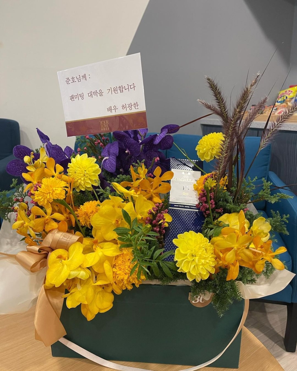 貼文中同時也公開了許光漢送的花束照片,許光漢為俊昊的台灣粉絲見面會加油,還在花束上用韓文寫了祝賀詞:「祝俊昊粉絲見面會大獲成功」,真的是太溫馨啦~