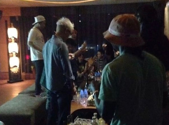 另外,網友也以「很少人見過的BIGBANG照片」為題,曝光了BIGBANG昔日尋歡作樂的照片,成員們在疑似慶功宴的聚會中叫小姐,女方是只穿了內衣的裸露程度,而當時太陽已有女友閔孝琳。對此網友們紛紛表示「玩得真的有夠花」、「最後抱著女人的人是GD」、「太陽不抽煙喝酒 聚餐時都只待了開頭就走了 後面有小姐的照片好像沒有他」、「現在的Afterparty都是這樣嗎」、「該賺的錢都賺了 想做的事也都做了呢呵呵」。
