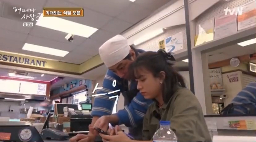 另一邊,趙寅成、韓孝周、車太鉉三人圍在收銀檯一起寫菜單,結果寫著寫著,逐漸把車太鉉給忘了...看到夫妻二人那麽沉浸地工作,車太鉉也非常識趣地走開了哈哈哈哈!!