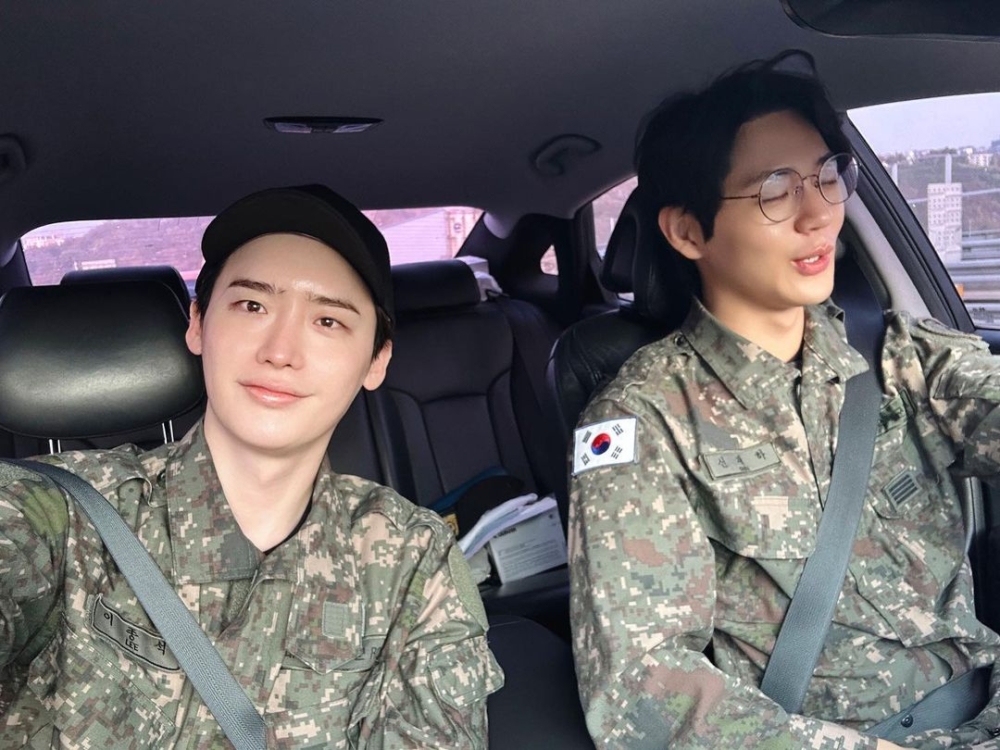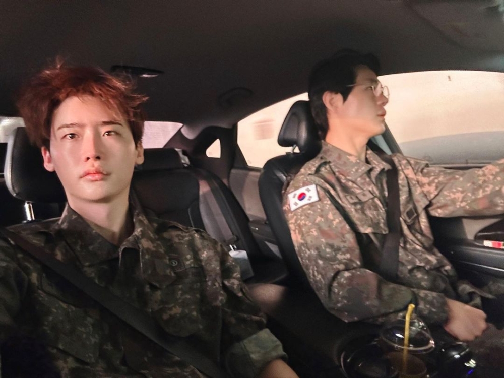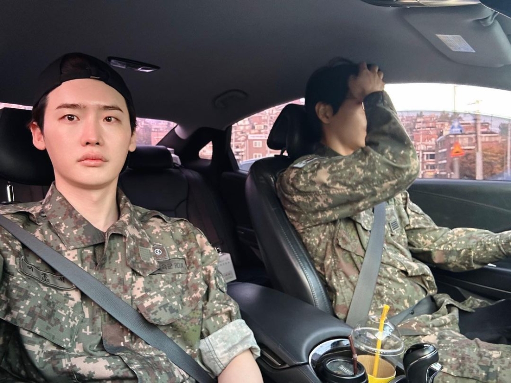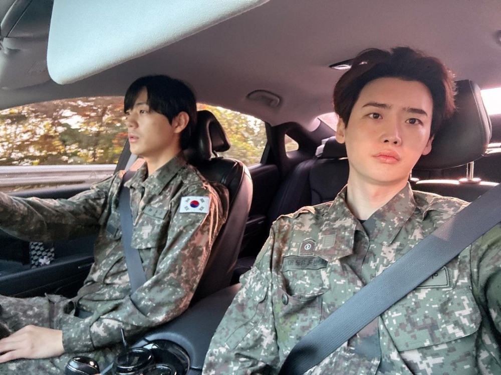 10日,李鍾碩在個人IG上傳了與演員辛載夏在車上的合照,並寫下「K預備軍上下班路」。照片中,兩人都穿上了軍服,配合他的文字敘述,推測是一起參加了退役軍人的預備役軍訓,但兩人前後的狀態差異也太好笑啦~