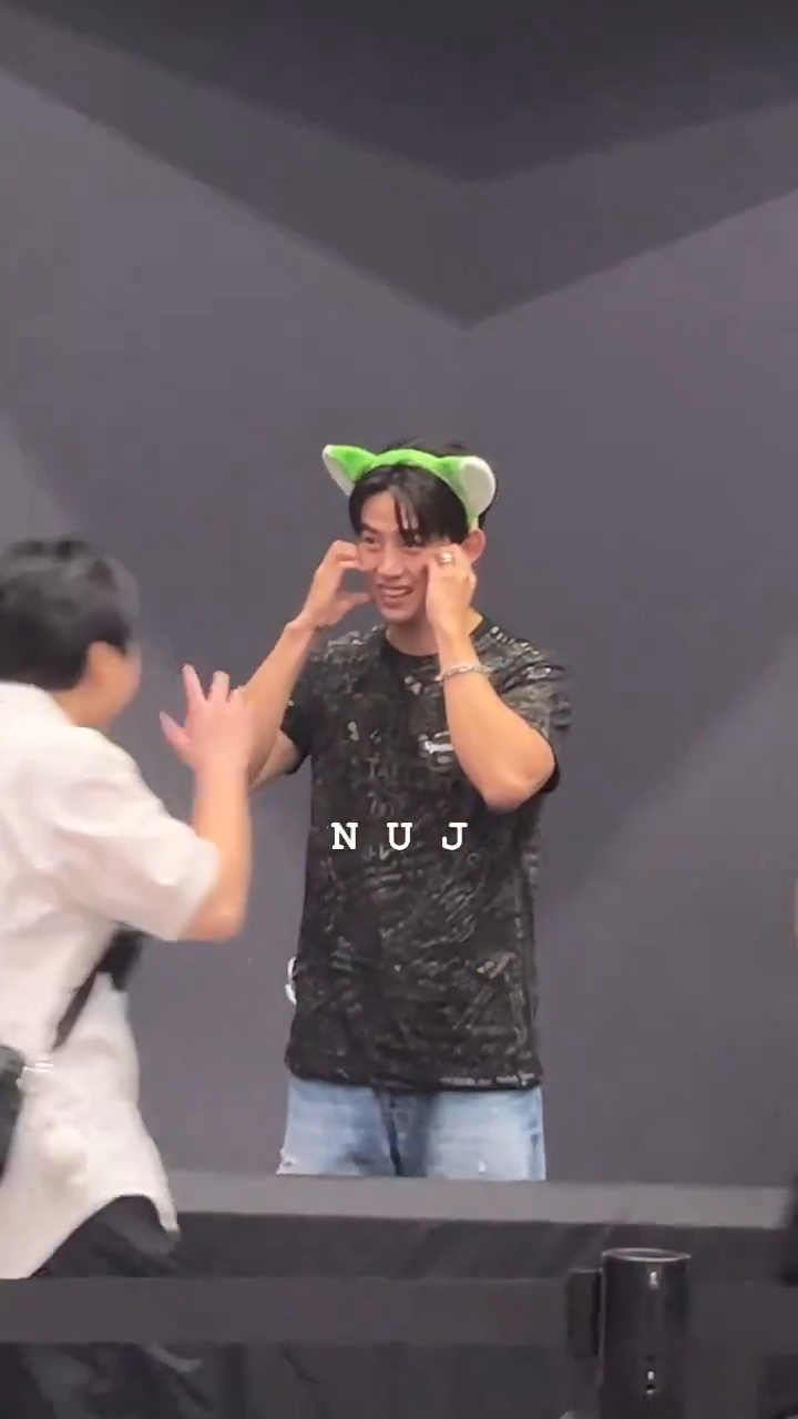 他接著說:「粉絲們都準備好要跟我們説的話『歐巴請做這個吧!』但我真的...沒辦法做到(笑)。然後有一個粉絲跟我說『歐巴,這可是付費服務』我覺得很有趣,那位為了我花了多少錢啊?OK你想要什麽。也從那次之後突然『歐巴給我比個心吧』OK比心xN 就變成現在這樣了(笑)。也是從那次之後心態就放平了『對呀,比個愛心會怎麽樣嗎?』」