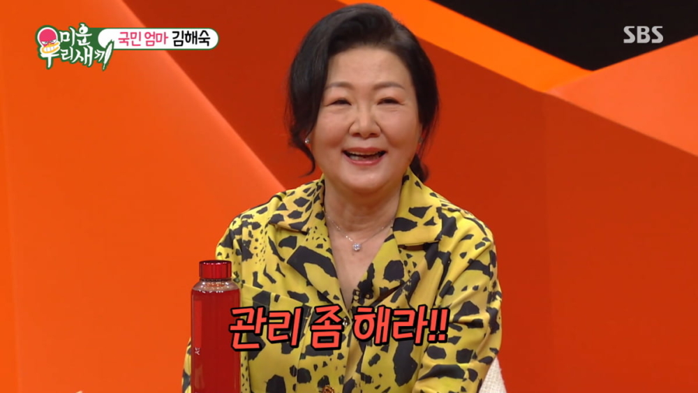快要踏入70代的金海淑被問到如何做好體力管理時,她先開玩笑說:「 呼吸和躺著,吃東西。沒有拍攝的時候在家休息,工作的時候生活就會充滿活力,像工作狂一樣。在家幾乎不動,也不從房間裡出去,女兒一進來就說這裡 是病房嗎(笑)?」原來金海淑和我們普通上班族一樣啊,休息天能躺著絕對不坐著XDD