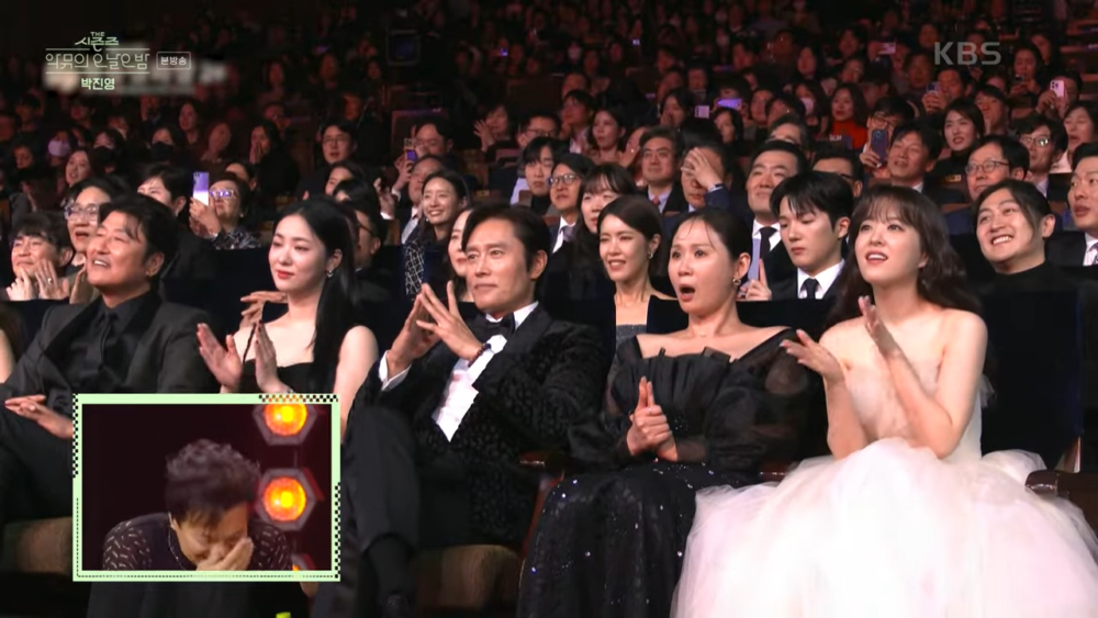 節目上大螢幕重播了當時《青龍獎》現場直播影片中,原封不動地展現了台下藝人們看到表演後驚慌的表情。這次親眼目睹台下藝人表情的JYP也忍不住尷尬爆笑,不好意思地低頭掩面,這真的是太社死啦~不過一旁的樂童兄妹還是稱讚道:「這是非常破格的表演、「我沒想到能在韓國看到這樣的舞台,就像看海外舞台一樣很帥。」