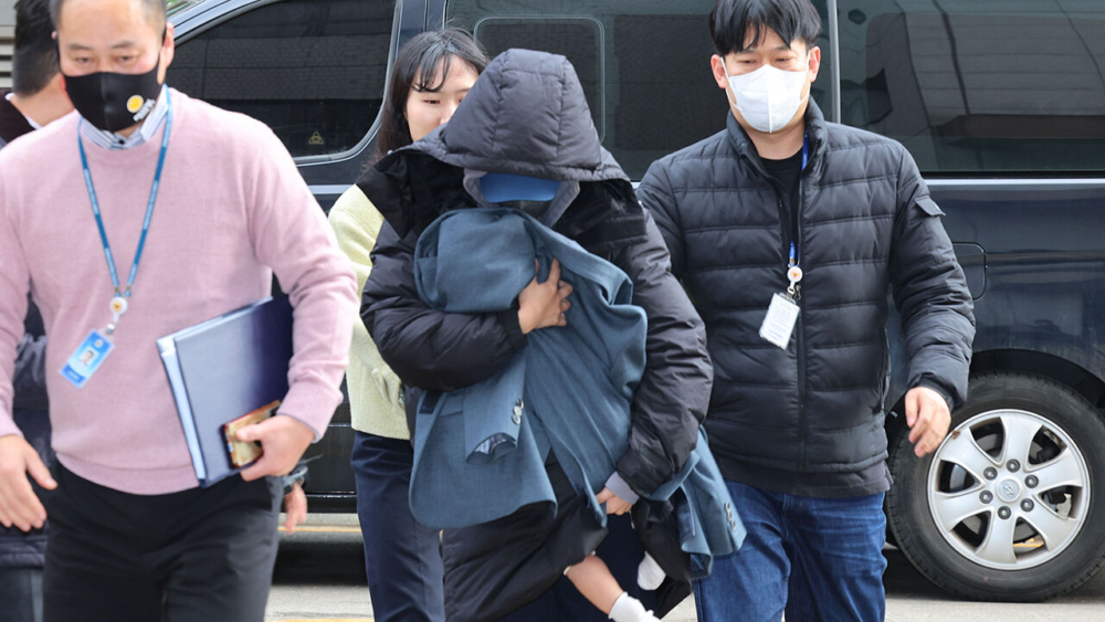 28日下午,涉嫌敲詐已故演員李善均、勒索數千萬韓元的娛樂場所女室長A某(28歲,女),為了接受拘留前的嫌疑人審問而來到了仁川地方法院,她身穿黑色羽絨服、戴著帽子、全程低著頭,用西裝外套抱著孩子出席了逮捕令審查。