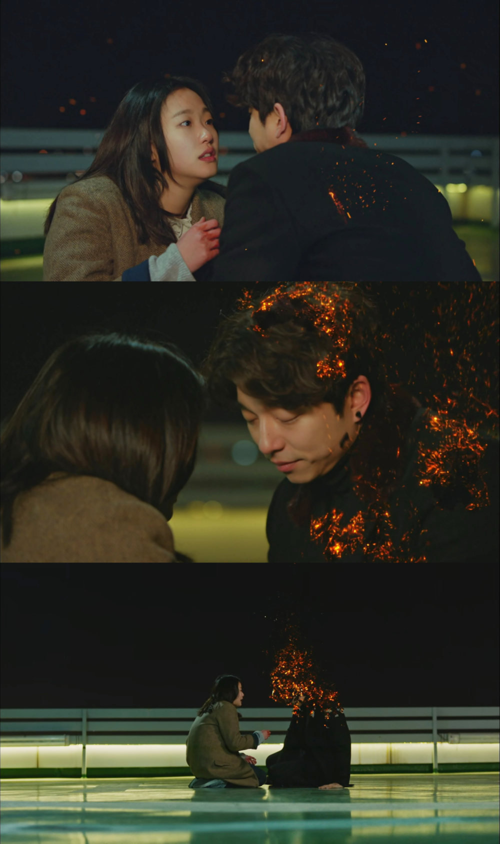 然而該集播出後,不少網友也指出這一幕真的超級像《鬼怪》第13集中,鬼怪金信(孔劉 飾)在拔出心上的劍後歸於虛無的名場面,感覺火花飛舞方式、顏色都是同款啊XD