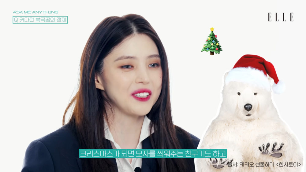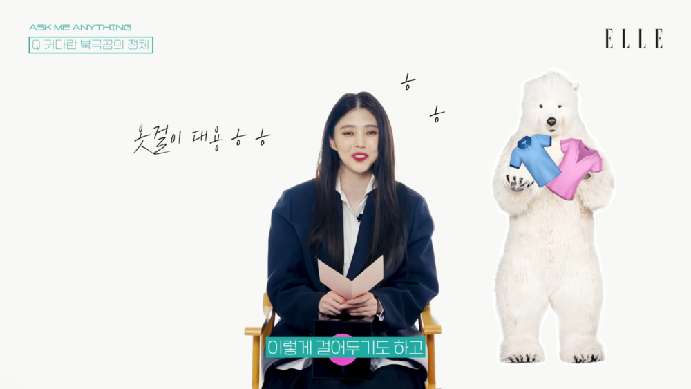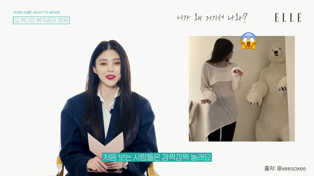 看到有粉絲好奇今年初開始出現在韓韶禧IG的巨大北極熊是什麼來頭,歐膩忍不住笑出來:「是衝動購物(笑)。第一次看到它的人都會很震驚,因為有一隻190公分高的北極熊。這位朋友的存在就是,經過的時候會抱一下,結束日程回家後會對它說『我回來啦』,聖誕節的時候會給它戴聖誕帽,換衣服的時候還會讓它幫忙拿衣服,是跟我共有很多回憶的朋友。」(莫名感覺很實用XD)