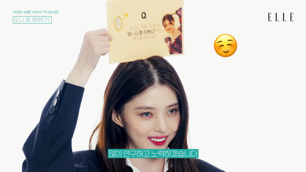 在畫報採訪影片中,韓韶禧被問到「照鏡子時會有『哇~我長得滿漂亮的嘛』這種想法嗎」,對此歐膩竟然回答「沒有」!韓韶禧答道:「說實話真的沒有,但最近為了能這樣想而正在努力中。因為被說很漂亮感覺很好,如果能展現出這樣的面貌... 而且感覺很好就是很好啊。為了多多展現我漂亮、好的一面,會好好研究和努力的。」