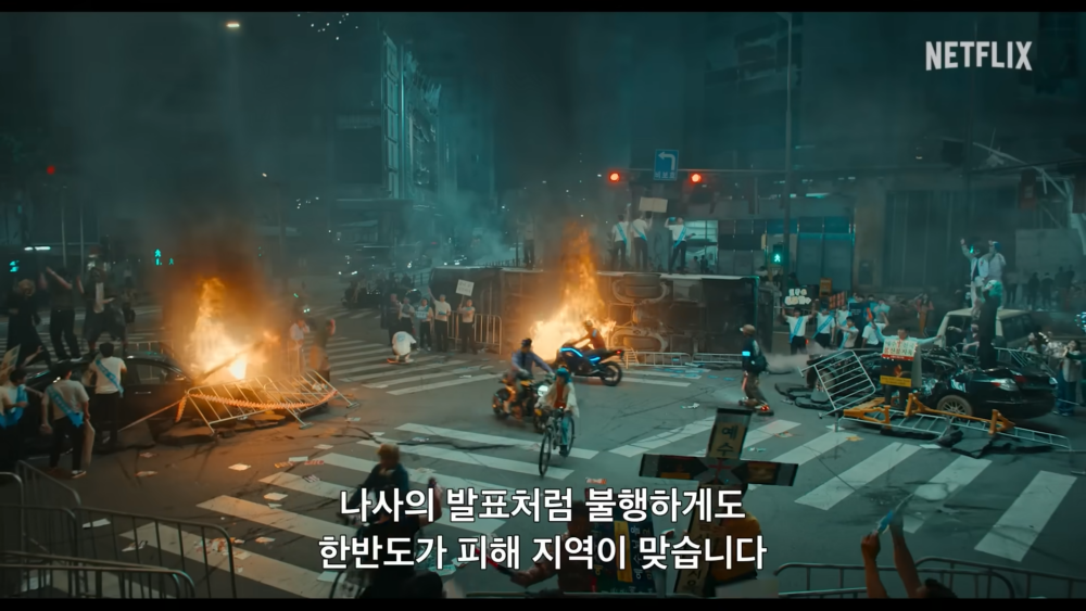 官方日前公開的首波預告中,以踢足球、度過和平日常生活的市民突然接到災難警報的樣子開始。隨著小行星向地球駛來的報導,未能即時撤離被分類為危險地帶的韓半島以及安全地帶其他國家的市民的生活一夜之間發生了巨大變化、化成廢墟...