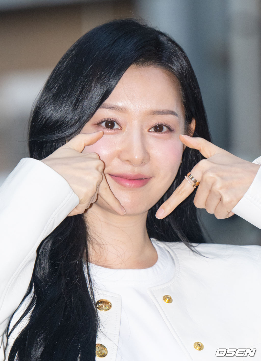我們的女王「洪海仁」金智媛被記者們cue比出戴皇冠的Pose,歐膩一開始聽到要求還有點矇,後來比完自己也有點害羞XD 然後她也同樣也被要求比了眼淚手勢,裝可愛表情太Q啦~