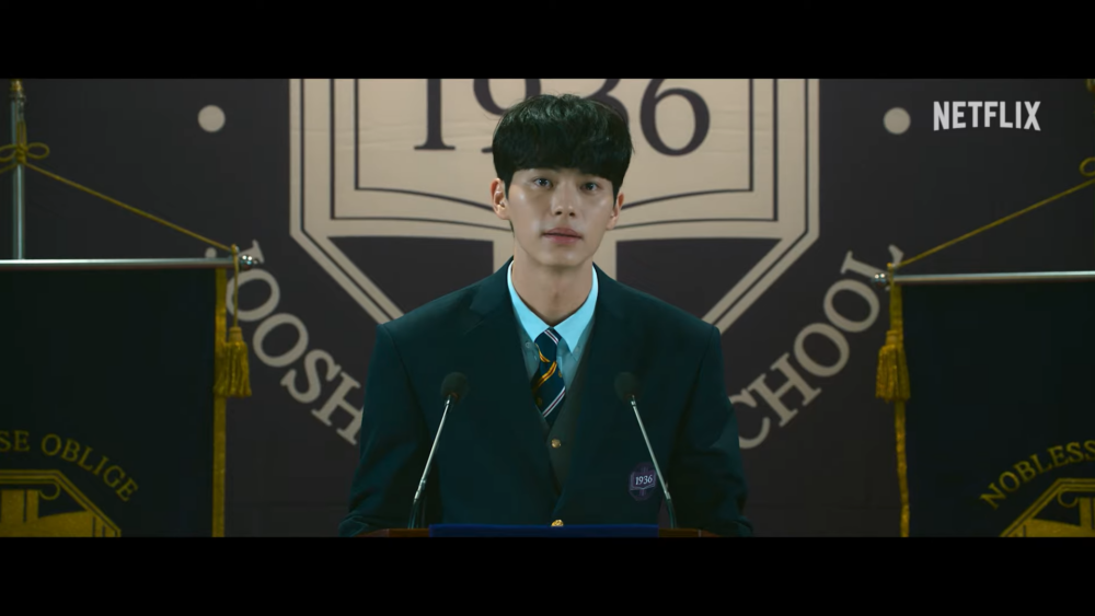 同時公開的預告中,以懸疑的背景音樂開始,只見一名學生躺在血泊上凄涼而亡,與在華麗派對上玩得盡興的朝信高中生形成了强烈對比。姜河作為獎學金獲得者進入到號稱擁有「完美秩序」的朝信高中,就注定他所面對的現實將會是徹底的無視和冷落。