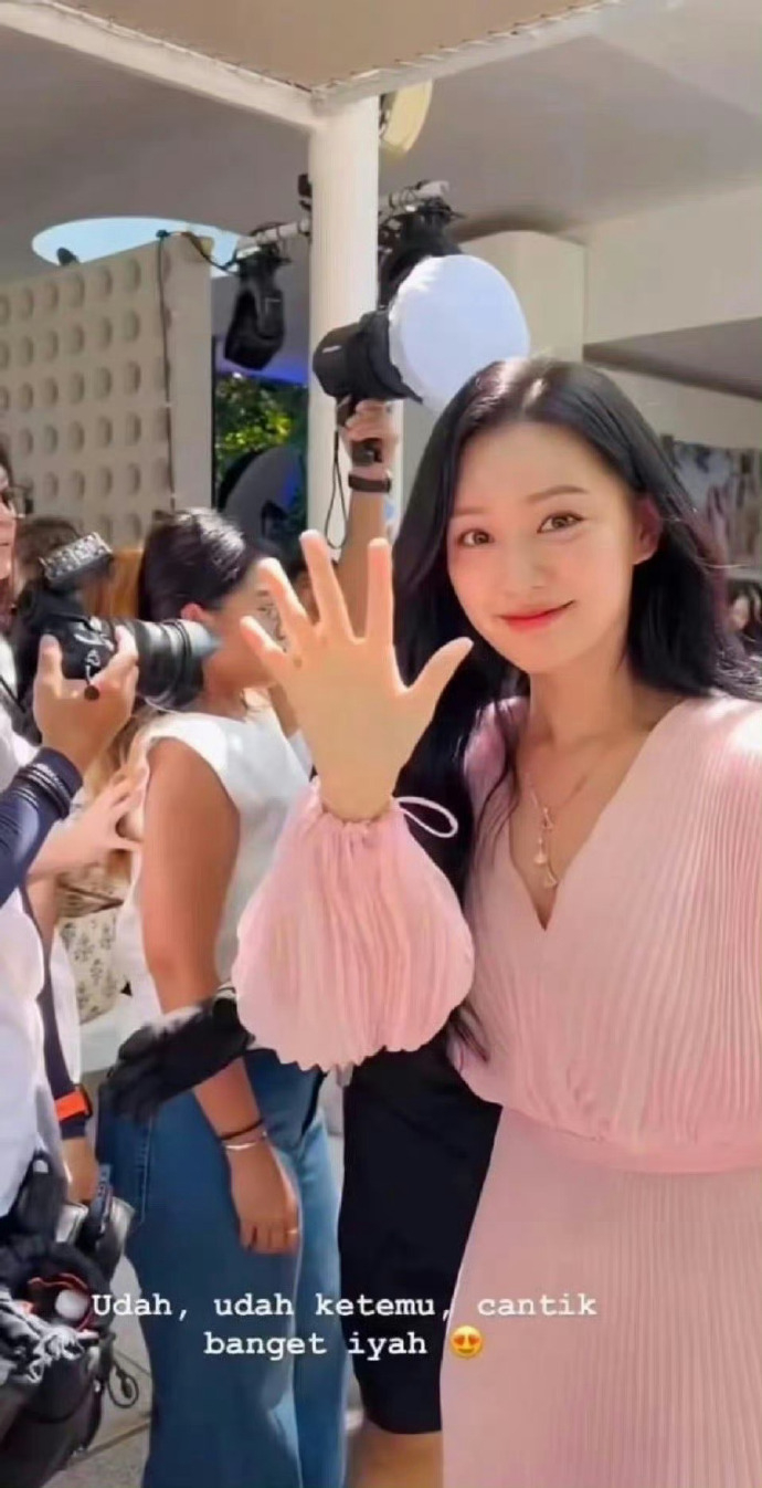 活動現場上,金智媛則身穿一襲粉色飄逸洋裝亮相,真的仙氣滿滿!