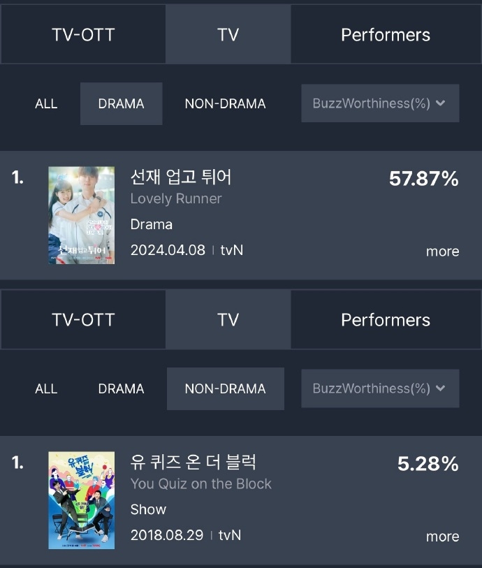 另外,邊佑錫出演的《背著善宰跑》與《劉Quiz》節目本身,也在電視劇話題性排行、非電視劇話題性排行中拿下1位。甚至《背著善宰跑》的比重還是非常可怕57.87%,所以是其他劇加起來都比不過善宰...(汗)。