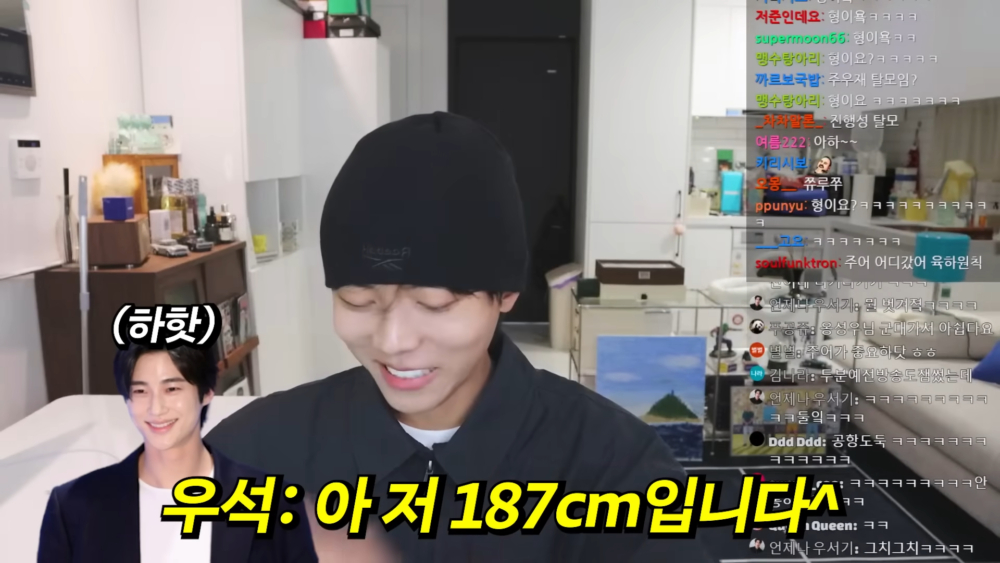 不過之後朱宇宰也解釋,因為模特界公認的最理想的身高就是187cm,大概是186-188的範圍,超過或低於就會被覺得過高或過矮,於是去試鏡的時候,所有模特都會說自己187cm,但一排站出來全都不一樣高。就連邊佑錫也是被問到身高時,也是習慣性就說了187呢(笑)~
