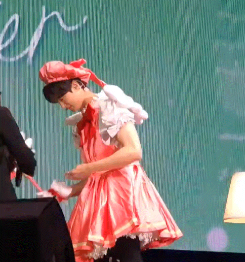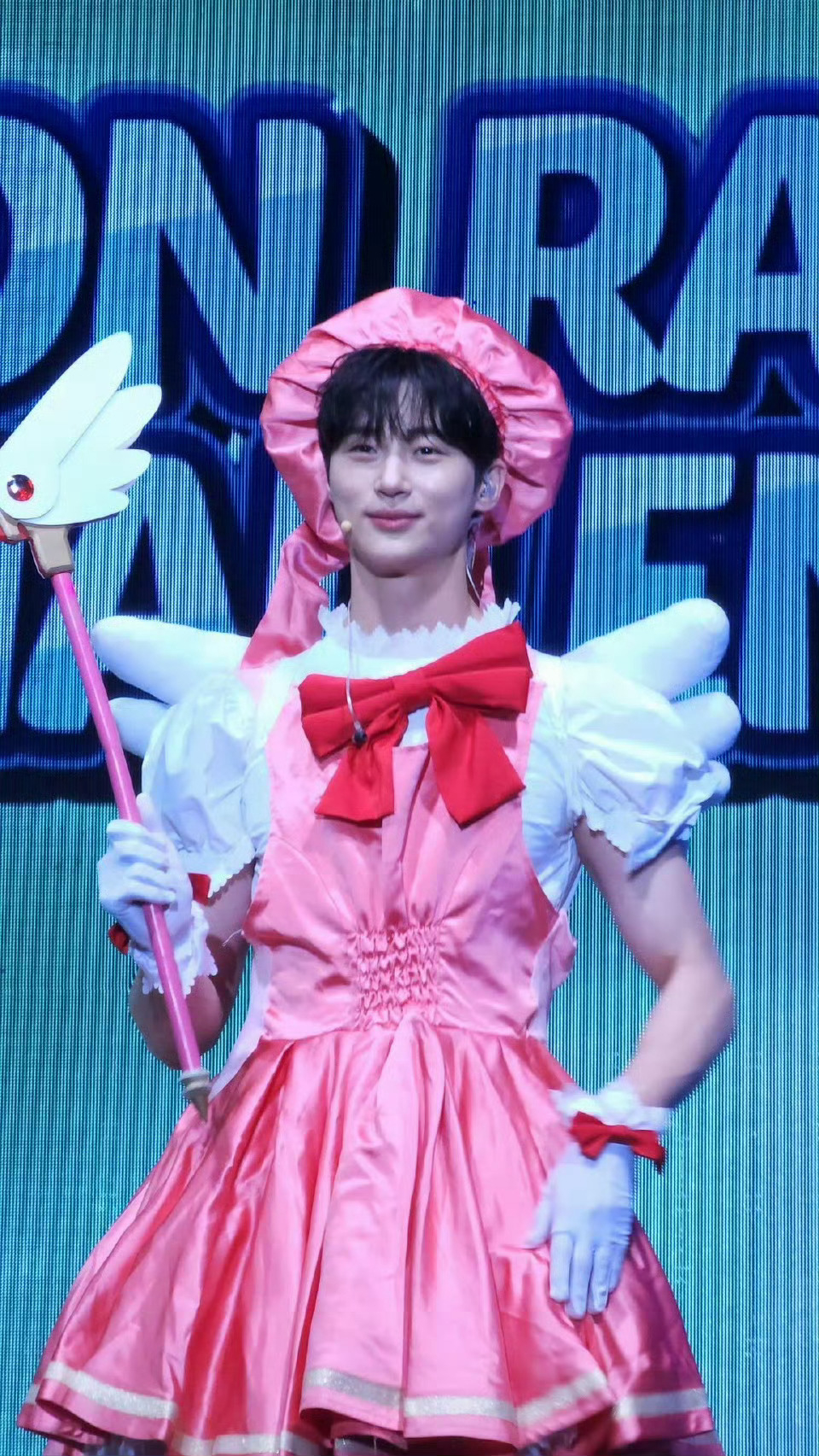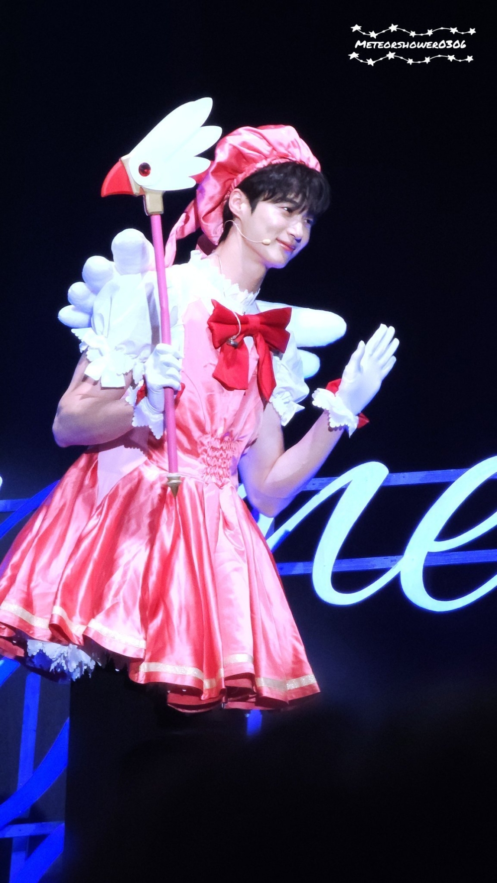 不過最讓粉絲大跌眼鏡的,大概就是邊佑錫的變裝秀了(笑)。邊佑錫在換裝的時候還故意誤導粉絲,說這套是他在家裡經常穿的,自己還有各種不同顏色的,大家原本以為可能是睡衣之類的,結果出來一看,竟然是庫洛魔法使小櫻!網友表示:邊佑錫這版是「巨櫻」了吧!(而且邊佑錫還把衣服穿反了XD)