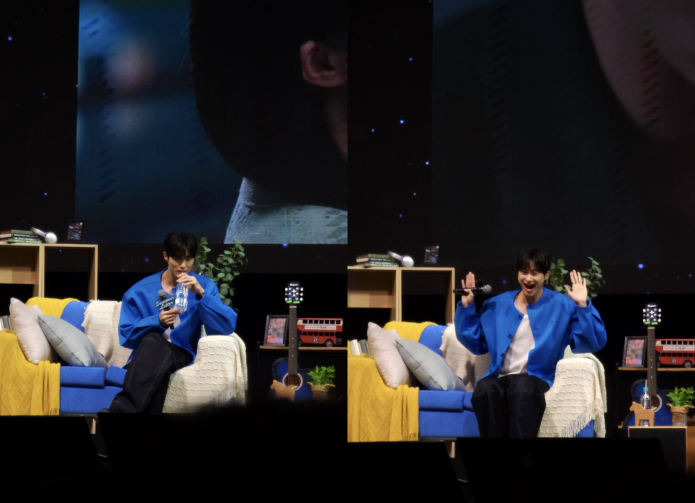 邊佑錫與大家一起回顧《背著善宰跑》名場面,還抽粉絲上台一起重現「小黃傘初遇」,讓台下粉絲看得激動又羨慕。之後看到吻戲合集時,邊佑錫嘴角一直忍不住上揚,為自己搧風+戰術性喝水(笑),看到最激烈的率善CP「成人吻戲」時更嘴巴張大舉手投降XD 看完影片後的他表示:「覺得好難為情!」邊佑錫也透露當初拍攝該場吻戲的心情,因為是愛了小率15年的善宰第一次奔向小率表明心意的戲,自己拍的時候也心臟狂跳,非常悸動。