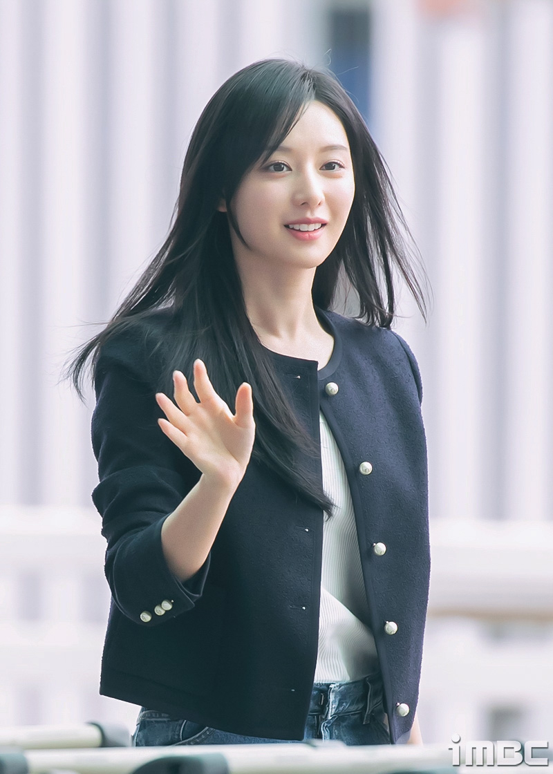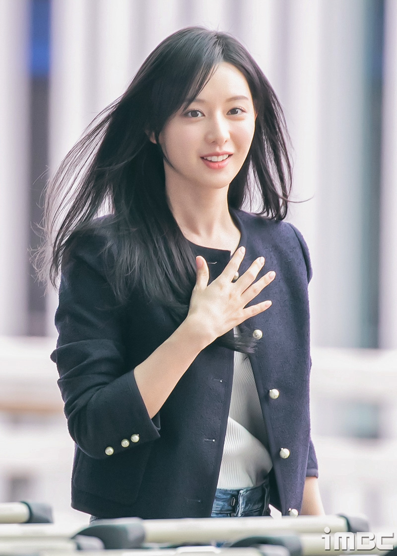 金智媛的笑容真的太治癒了~她十分親切地與現場的記者與粉絲打招呼,並比了愛心,連睫毛也完美的女人(誤)~