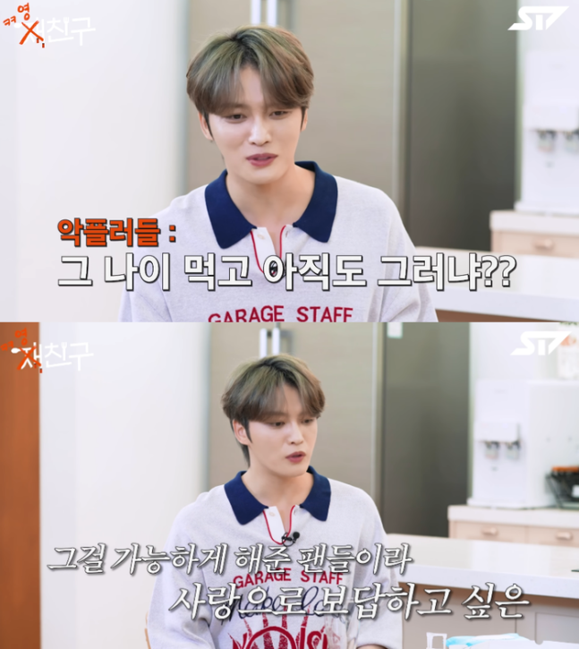 今年迎來出道20週年的金在中在節目上表達了對粉絲的愛意:「如果人們問我為什麼幸福,我就會說『因為粉絲而幸福,粉絲們就是女朋友』。有酸民會留惡評說『年紀這麼大了還這樣嗎』,但粉絲們是成就了現在的我的可愛的存在,所以看到這樣的惡評,就會激起我的戰鬥力。」