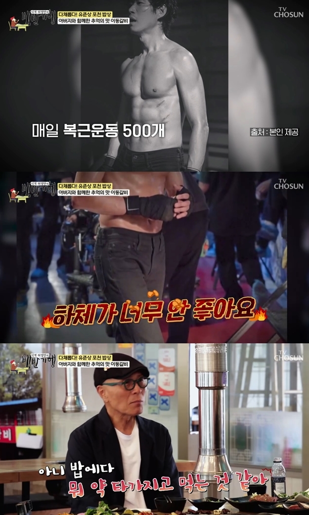 在6月30日播出的節目《食客許英萬的白飯紀行》中,作為嘉賓出演的劉俊相與許英萬一起來到了充滿與父親回憶的二東排骨美食店。柳俊相在吃飯前被問到餓不餓時,他不僅表示自己一天只吃一頓飯,還透露他為了消化多樣的角色,平時也會努力進行徹底的體重管理。
