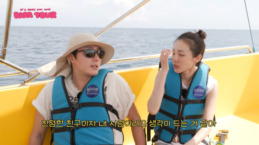 在5日公開的「DARATOUR」新一集中,Dara與好友丁一宇前去菲律賓保和旅遊,聊天時兩人聊到Dara曾經是不婚主義者,但現在想法有因為男友而改變。丁一宇就對Dara說:「因為妳是很好的人,所以也會遇到很好的人。」Dara也感嘆自己常聽到這種話,但現在真的慢慢相信了。