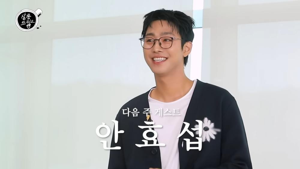 《Salon Drip 2》是由搞笑藝人張度妍主持的談話類Youtube節目。該節目每期邀請的嘉賓都會是近期有新劇或新電影要宣傳的演員。但安孝燮目前除了電影《全知讀者視角》意外,就沒有傳出過任何的新作消息,因此讓粉絲們相當驚喜~
