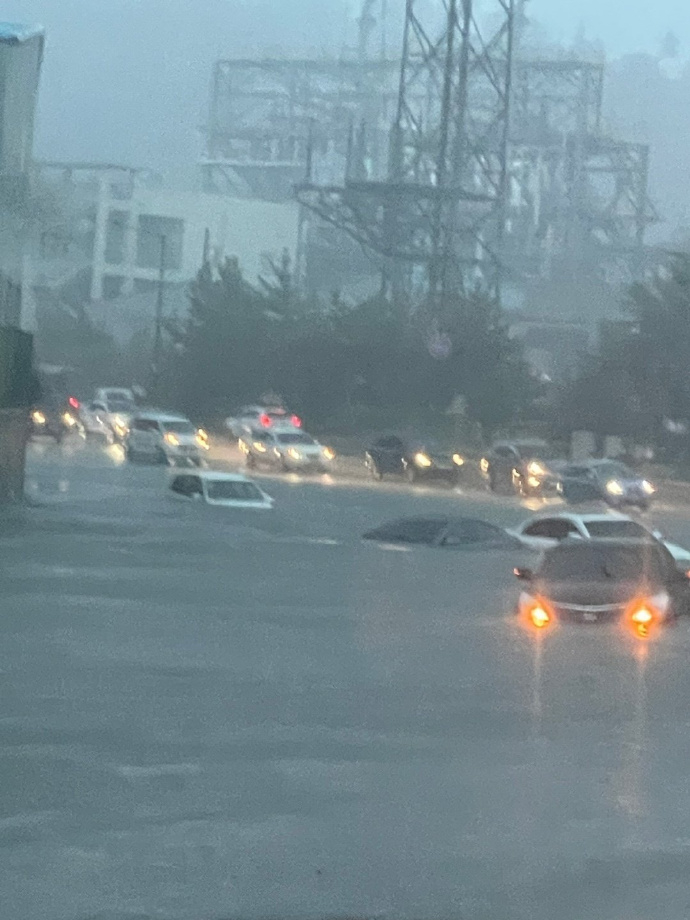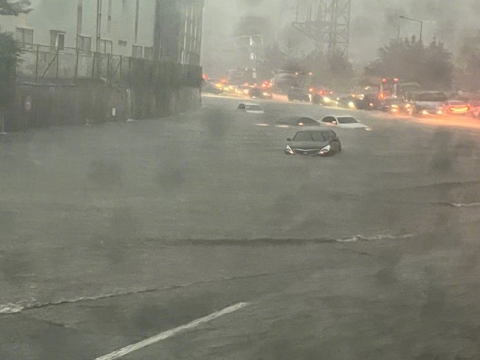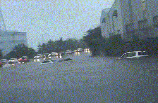 韓國蔚山上班路水災頻發!最大降雨量達100毫米!從今天(20日)凌晨開始,韓國蔚山的暴雨導致居民受困家中、車輛浸水等災害接連不斷。根據現場影片,淹水幾乎淹超過了車身的一半高度,也有司機在上班路上因淹水而受困車中。