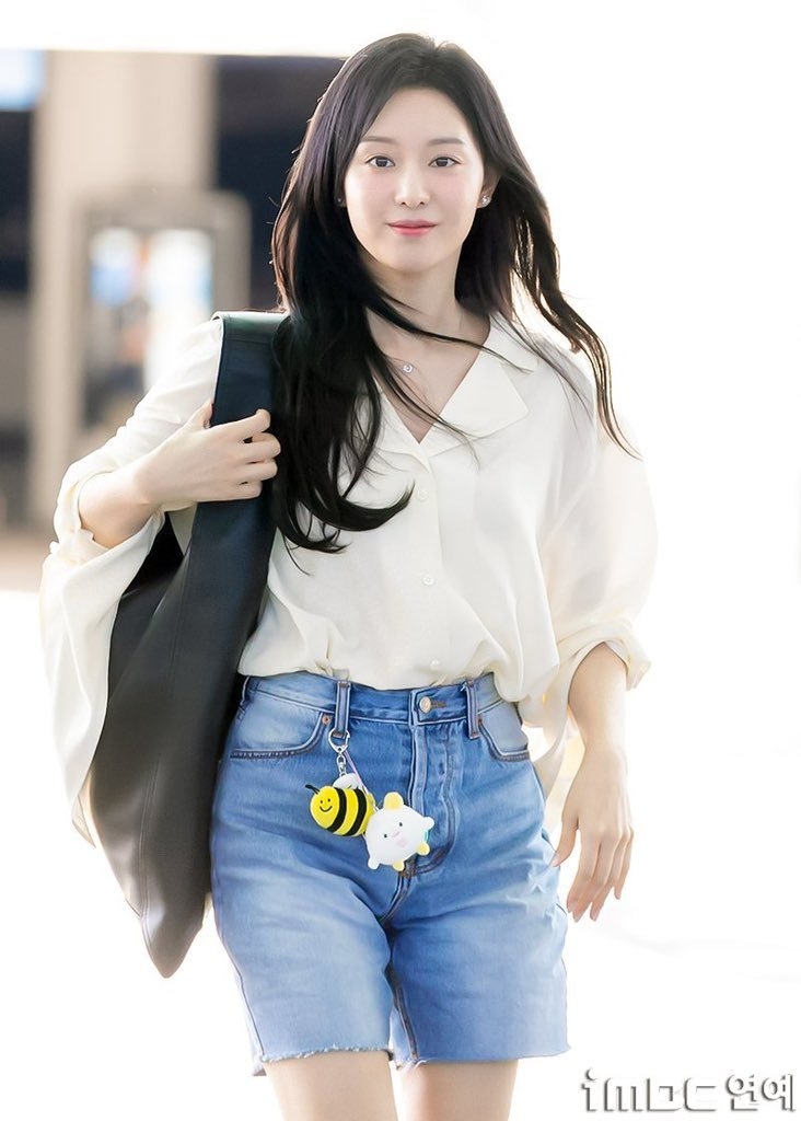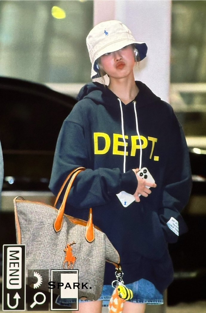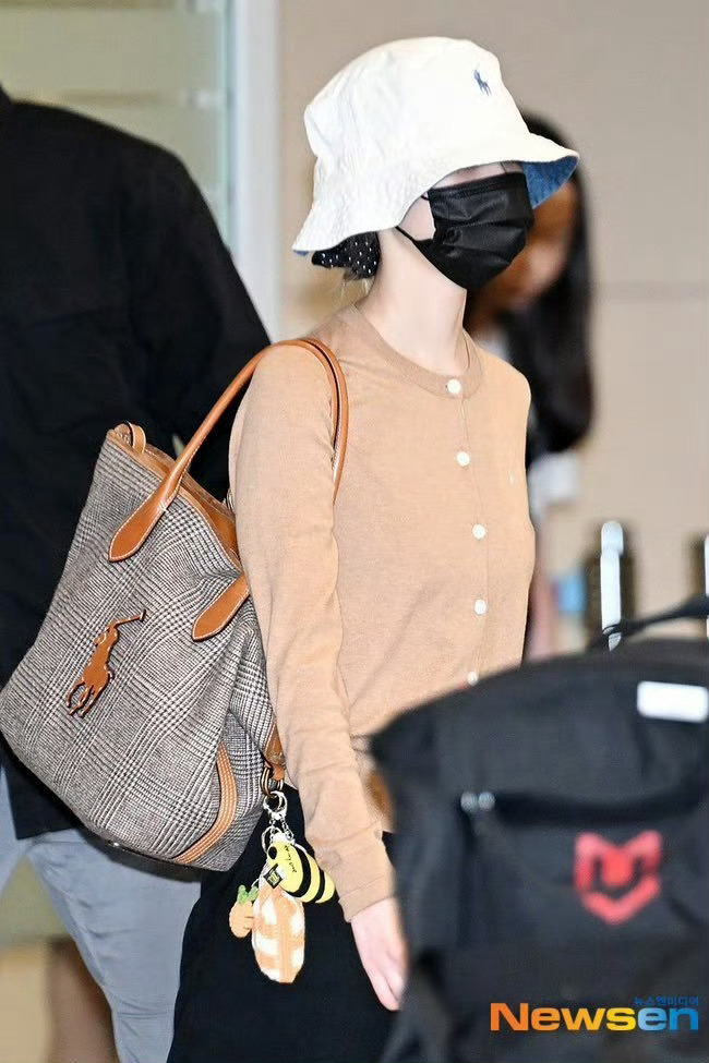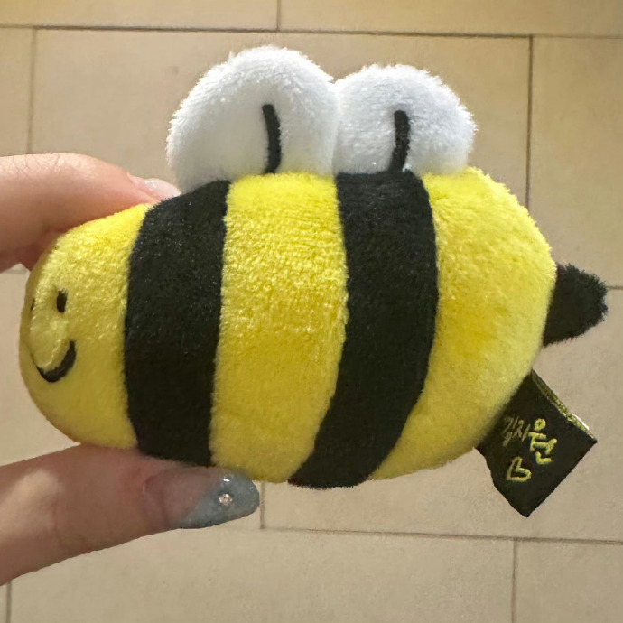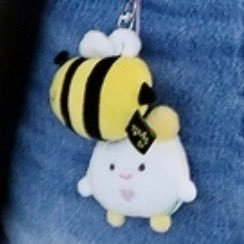 日前在Winter出國的機場照中,可以看到她在包包上掛了一個蜜蜂造型的玩偶鑰匙圈,而這個鑰匙圈其實是金智媛見面會的周邊啊~