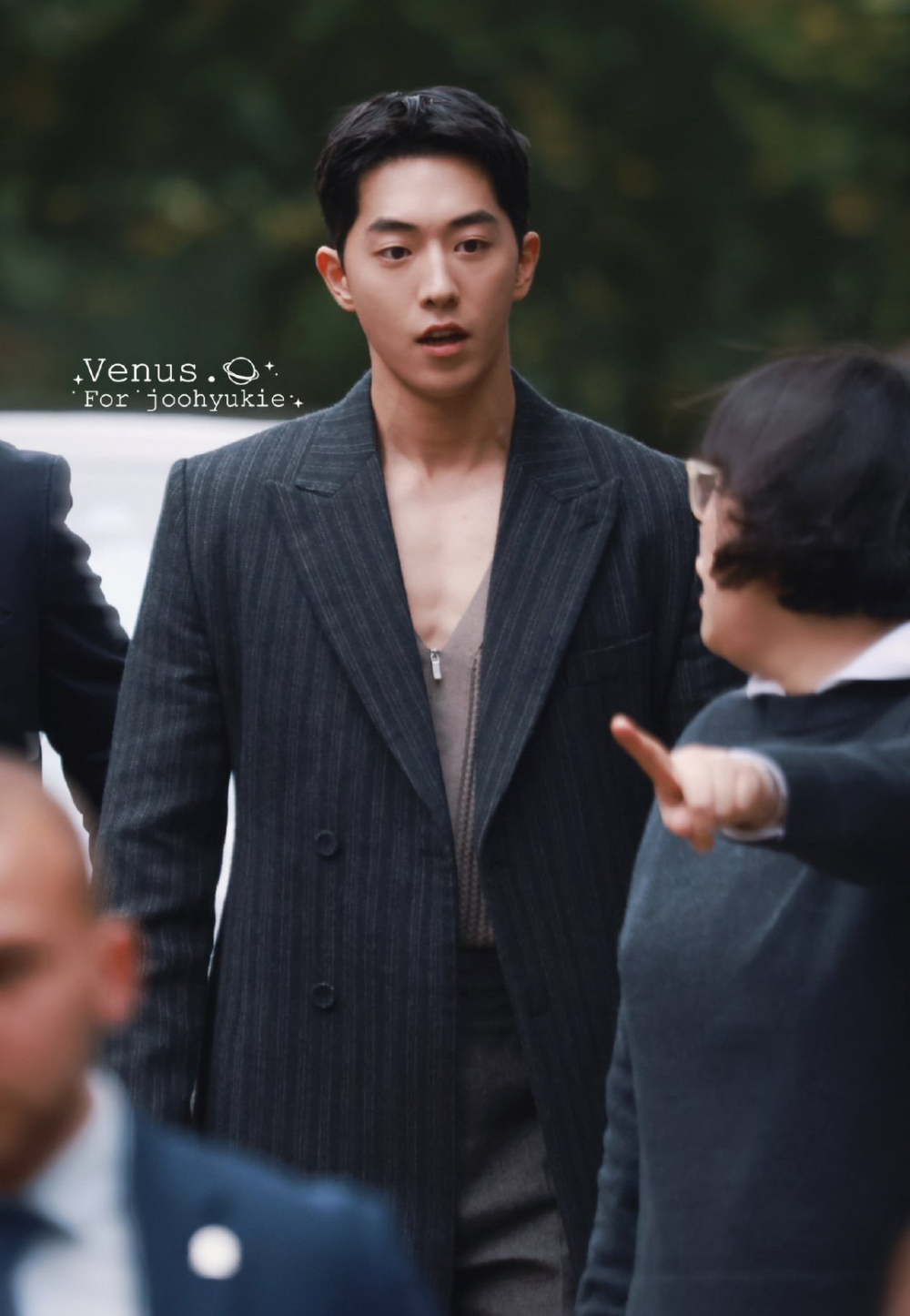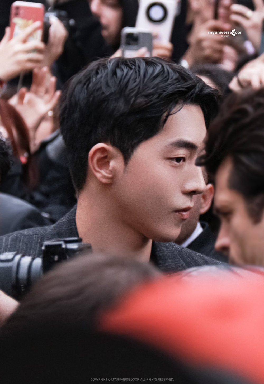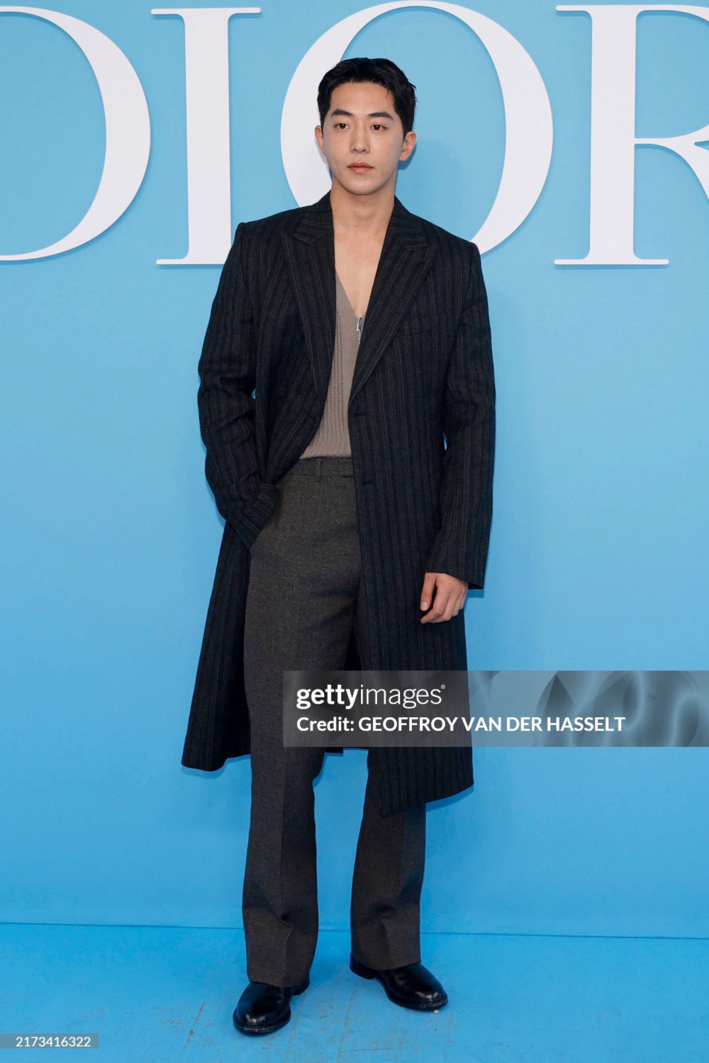 另外,剛退伍的南柱赫也受邀出席了在法國巴黎舉行的Dior 2025春夏大秀,當天他身穿黑色條紋長外套搭配灰色西裝褲,展現出沉穩又幹練的造型,身高187cm的他以專業的姿勢和眼神展現出模特兒氣場。