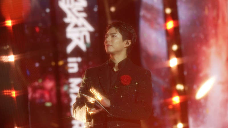 第二套黑色閃鑽西裝造型也好好看~胸口別的小紅花感覺很有西班牙風格?據悉朴寶劍不久前才因電視劇拍攝而受傷,原本不太確定能去主持,但為了遵守與全世界KPOP粉絲們的約定,還是竭盡全力參加了此次活動,男神真的辛苦了ㅠㅠ
