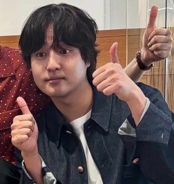 而在隔一個月後柳承龍與安恩真上傳的合照中,梁世宗不但滿臉鬍渣,頭髮也很明顯沒有在打理,瀏海整個蓋住眼睛,一眼看過去小編真的沒認出來是梁世宗,還以為是幕後工作人員或素人朋友!