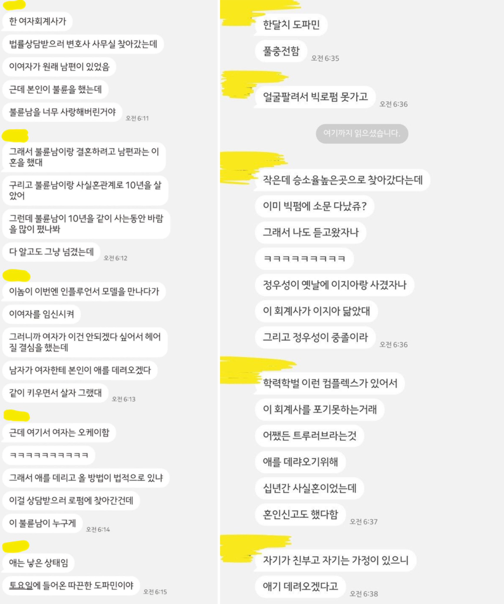 網上更流出疑似是律所員工吐槽鄭雨盛私生活的對話,內容相當炸裂!據悉鄭雨盛現在的女友是會計師,她與鄭雨盛出軌後跟丈夫離婚,然後和鄭雨盛在一起、同居了十年,但猜測鄭雨盛在這十年裡出軌了很多次,只是女友都睜一隻眼閉一隻眼。這次鄭雨盛遇到網紅模特並讓她懷孕了,女友覺得不能接受而決定分手,鄭雨盛就告訴她說會把孩子帶過來,他們可以一起撫養,所以才去律所諮詢合法帶走孩子的方法。