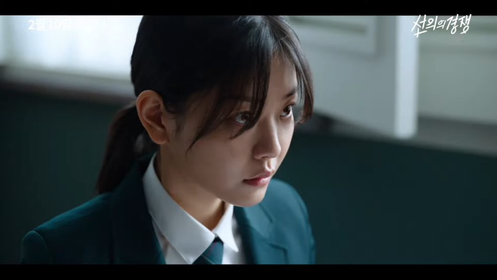 官方近日釋出的首支預告,以某人掉入水中的場面開始。接著,畫面轉向劇情背景「彩花女高」,鏡頭聚焦於自信地站在學生面前擔任代表的劉在伊。與她截然不同的是,轉學生禹瑟琪一出場就受到朱藝莉(鄭惠元 飾)、崔京(吳宇里 飾)等其他學生充滿戒心的目光注視。同時,伴隨著一句旁白:「你們認為競爭從什麼時候開始的呢?」