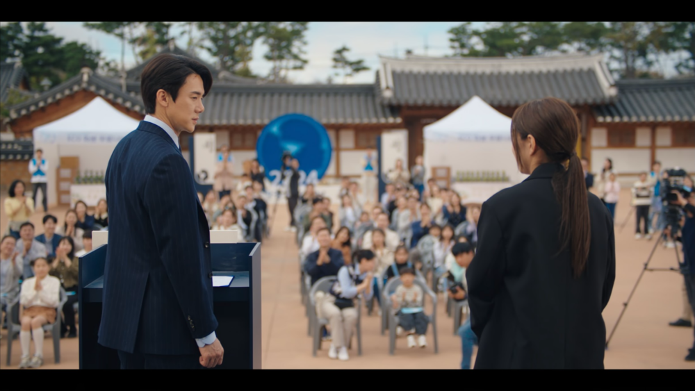 接到池相祐通知的熙珠趕到醫院,看到傷痕累累的司彥心疼不已,她決定要守護他。熙珠拿著綁匪手機想去警局自首,但司彥及時趕到阻止了她。兩人都知曉了彼此的秘密,卻依舊堅定選擇了對方。司彥和熙珠以發言人和手語翻譯的身份首次共同出席總統府活動,兩人默契配合、成功完成了活動。