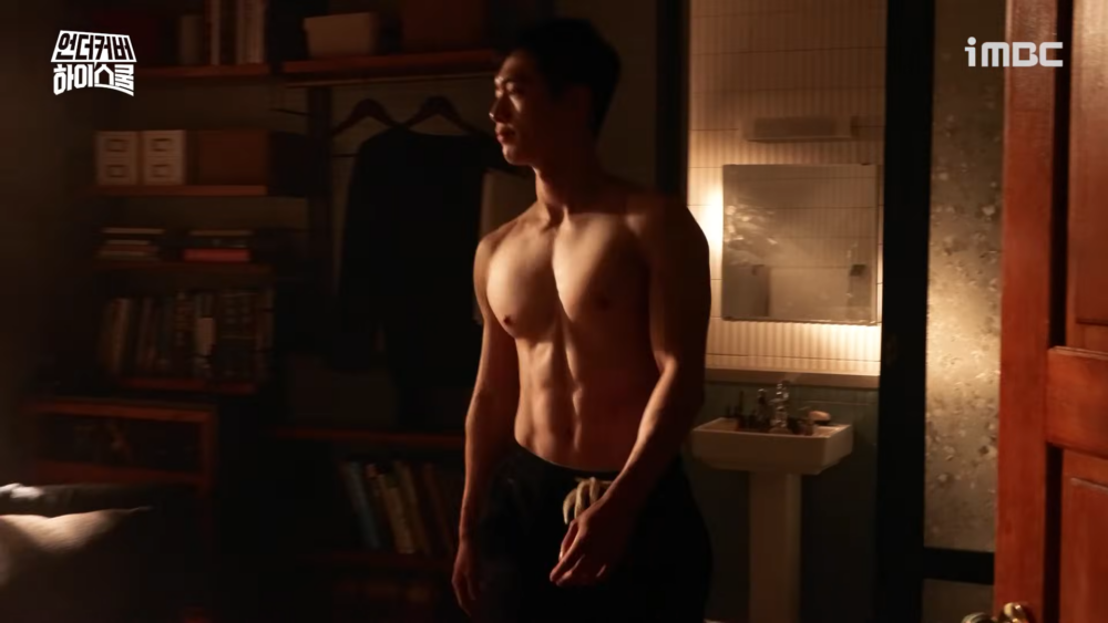 近日,MBC上傳了《臥底高中》的幕後花絮。這場戲是「鄭海成」接到任務,要偽裝成高中生潛入校園尋找金條,在家中換上校服的畫面。一般來說,男演員在拍攝裸上身的戲前,通常會在片場加練一下,但徐康俊完全不慌,反而超淡定,還在鏡子前欣賞自己好幾次XD